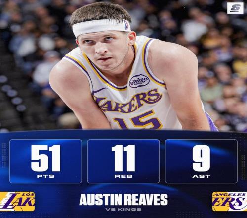 末节决战,国王连续强攻得手,里夫斯连中三分球帮助湖人稳住局面。萨克拉门托实现了内外开火,里夫斯兼顾得分与串联进攻,帮助紫金军团继续保持场上主动权。