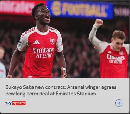 DO报道之后,罗马诺和天空体育都进行了报道,萨卡续约只等官宣了!看完一起说吧。