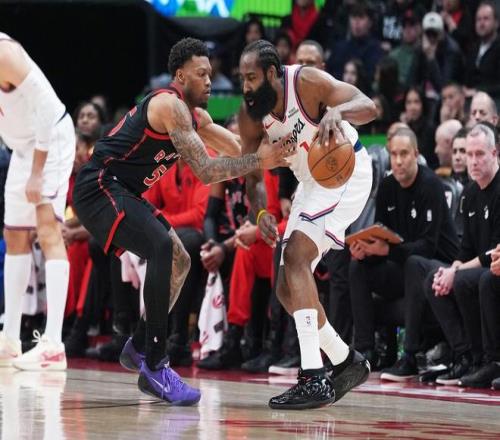 小卡、科林斯等主力缺阵,哈登单核带队客场加时逆转猛龙,快船豪取5连胜,已经冲到西部第十附加赛区了。