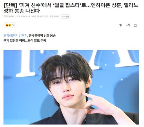据韩国媒体报道,韩国人气男子组合ENHYPEN成员朴成训将担任2026年米兰-科尔蒂纳丹佩佐冬奥会的火炬手。